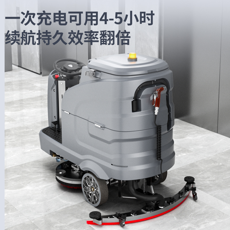 4. 適配性:鋰電續航實測4.5小時,滿電可完成全域清潔無需中途充電,駕駛操作簡單易上手,操作人員經簡單培訓即可上崗;機身設計貼合地坪漆地面,搭配軟毛刷盤不刮傷、不磨損地面,運行平穩無噪音,適配車間狹窄通道及設備周邊清潔。