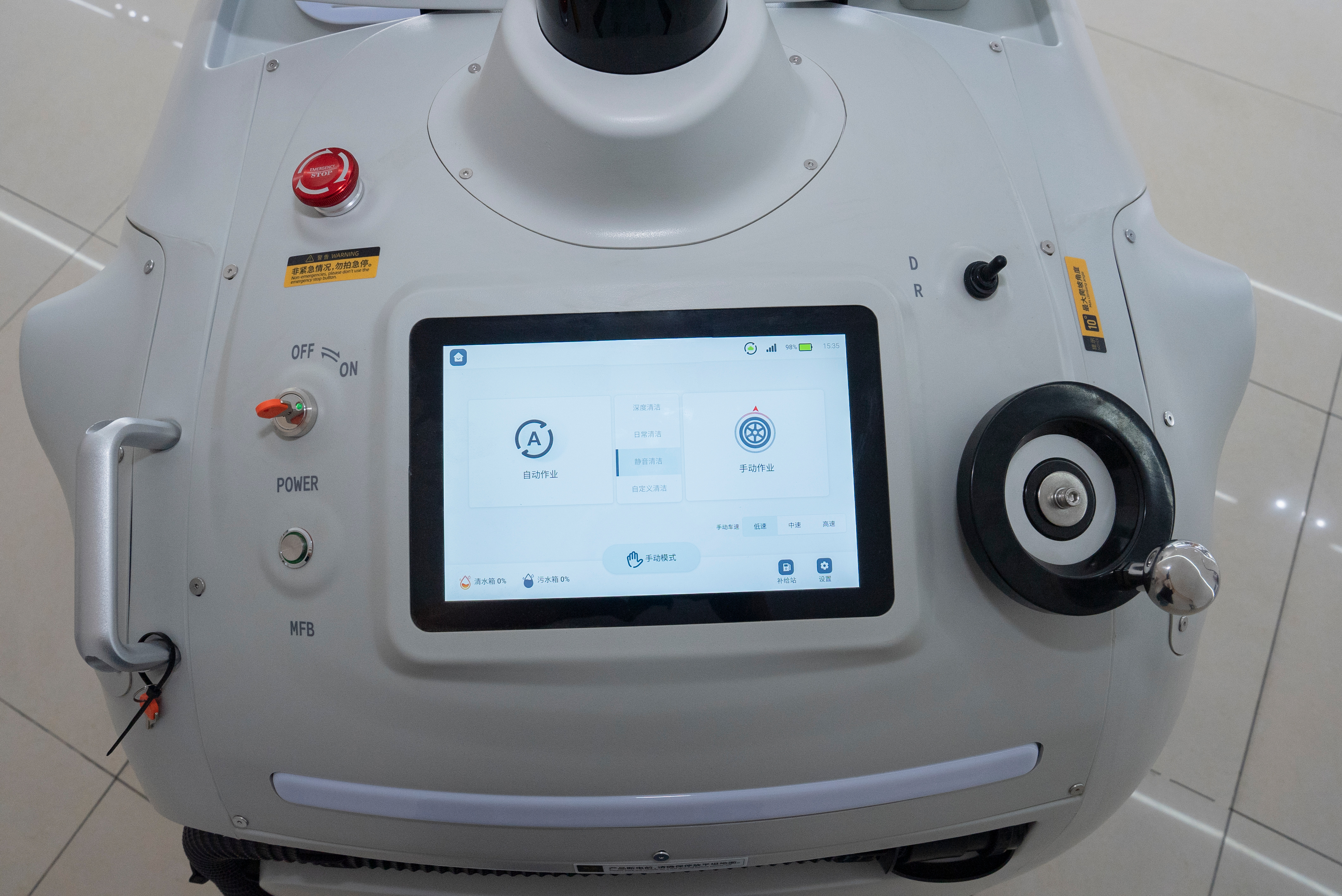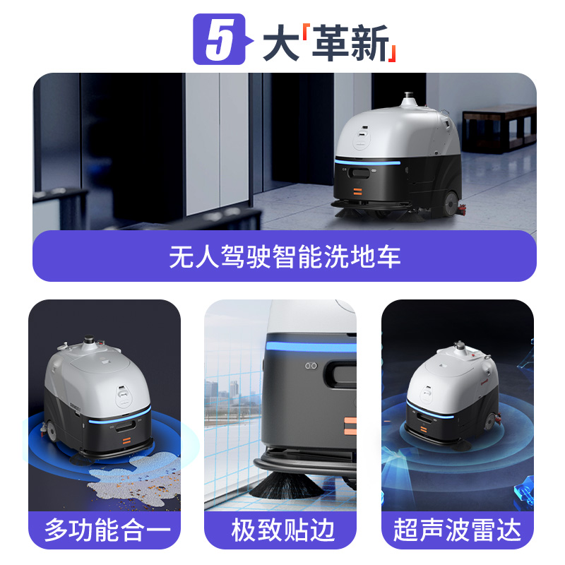 揚子YZ-SC80無人洗地機集掃洗功能于一體,搭載四目RGBD 攝像頭與超聲波雷達,1160mm清潔寬度,每小時可清4000㎡,適配多類硬質地面。支持自主規劃、定時作業,續航4-6 小時,適用于工廠、機場等超大面積場景。